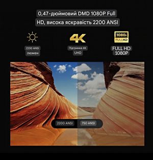 Проектор Byintek R90 Rock це топовий DLP проектор з високою яскравістю 2200 ANSI люмен та неперевершеним зображенням. Зображення проектора заворожує, а вбудовані динаміки 2*10 (Dolby Audio) дають якісний об’ємний звук.