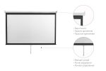 Модель оснащена пружинным свертывающим механизмом, что обуславливает удобство использования. К тому же этот экран предназначен для настенного или потолочного монтажа, благодаря чему устройство пригодится для установки в помещениях с самыми разными интерьерами.