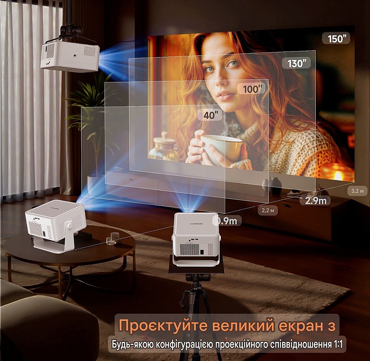 Проекційна відстань, (метри) 0.89 – 3.32