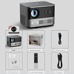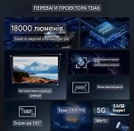 Проектор Thundeal TDA6W Full HD з вбудованим Андроїд 9.0 – це повністю закрита оптична світлодіодна машина з яскравістю 18000 люменів і роздільною здатністю Full HD (1920×1080). Проектор має пам’ять RAM 1GB DDR3 + ROM 8GB, Bluetooth 4.0., WiFi-2,4GHz/5GHz, бездротову синхронізацію з телефонами Android та IOS. Також проектор оснащений 6D Keystone. Має автоматичну корекцію трапецеїдальних спотворень для бічної проекції. Цифровий Zoom 50-100%. Відеопроектор Thundeal TDA6W Full HD підтримує проекційну відстань від 1,1 до 6 м для досягнення розміру проекції від 35 до 200 дюймів. Пристрій оснащений передовою системою охолодження, з покращеною технологією розсіювання тепла та зниженням шуму. Проектор має вбудоване автоматичне фокусування об’єктива та підтримку Red/Blue 3D. Термін служби лампи до 50000 годин. TDA6W підтримує читання файлів Microsoft Office (для Excel/Word тощо) безпосередньо через USB-накопичувач. Розмір проектора: 23*19*16,2 см